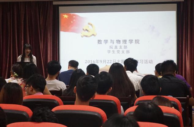 (通讯员:孙宇涛、李春霖)9月22日下午16:30,永利集团yl6809官网主题党日学习活动在数理楼二楼会议室举行,院党委书记李宇凯、院直支部的老师以及学生党支部的同学们参加此次活动。