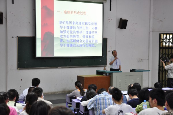 校党委副书记丁振国教授以“党风廉政建设”为主题为师生党员作了学习报告。丁书记强调,中国共产党是马克思理论武装起来的无产阶级政党,党的先进性决定了自身保持廉洁、反对腐败的必然性,在新的历史时期,要求党要管党,从严治党。接着,丁书记分四个方面向大家详述讲解了《中国共产党党员领导干部廉洁从政若干准则》的形成过程,当前严峻的反腐形势、地位、作用、主要内容等,强调各位党员要充分认识《廉政准则》的重要意义,系统、全面的学习,认真体会其中内涵,使其真正成为党风廉政建设工作的有力抓手。
