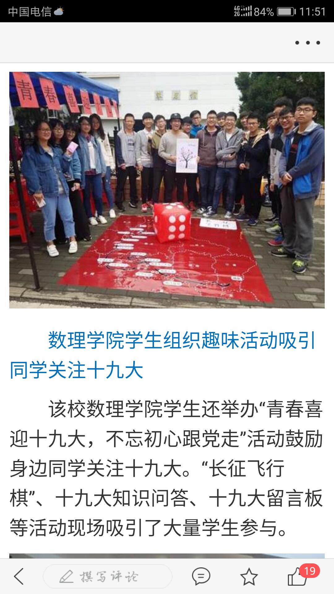 2017年10月21日,光明日报客户端报道《中国地质大学(武汉)掀起学习党的十九大报告热潮》,其中永利集团官网“青春喜迎十九大,不忘初心跟党走”活动被报道。详见链接:https://s.cloud.gmw.cn/2016/c/2017-10-21/972932.shtml