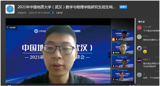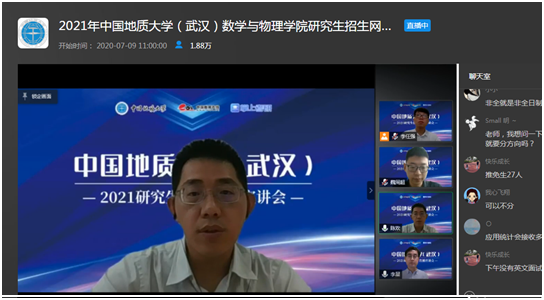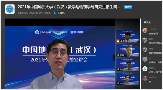 7月9日上午,永利集团yl6809官网副院长魏周超、物理系主任陈欢、信息与计算科学系主任李星通过中国教学在线网络直播平台,向同学们介绍了永利集团yl6809官网数学、物理、应用统计三个研究生招生学科的基本情况,并回答了同学们提出的各种问题。据统计,直播结束时,有大约1.8万余人参与了本次直播活动。