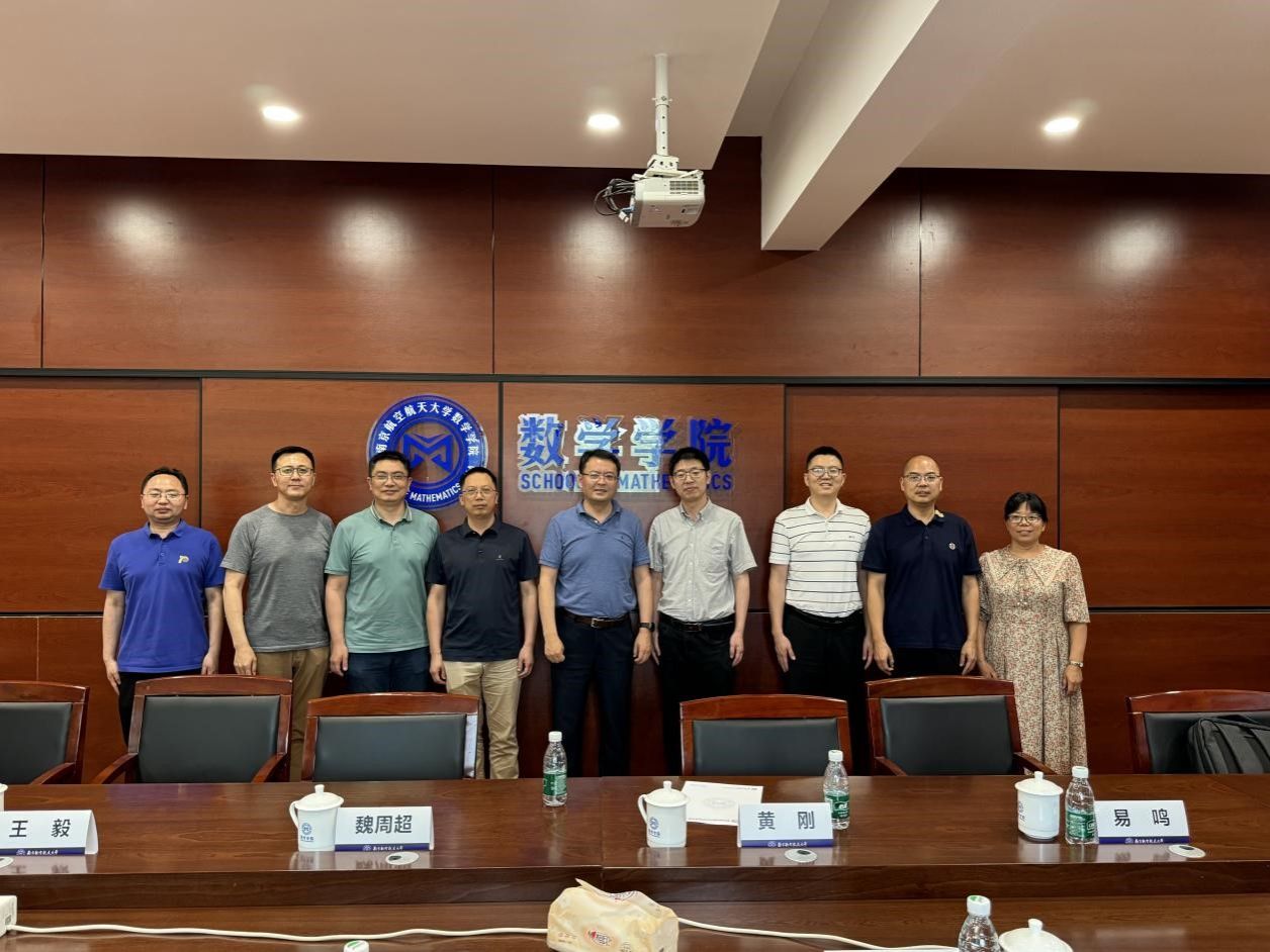2024年6月11日,永利集团官网院长魏周超率队赴南京航空航天大学数学学院走访调研,就学院本科教育教学审核评估相关工作、大学数学公共课资源建设、数学专业一流课程建设、学位点和学科建设、人才培养方面的先进经验和做法等开展调研。副院长黄刚、数学与应用数学系主任王毅、信息与计算科学系主任易鸣、大学教学部主任郭艳凤参加走访调研。