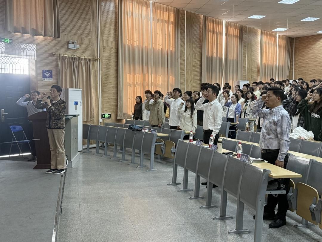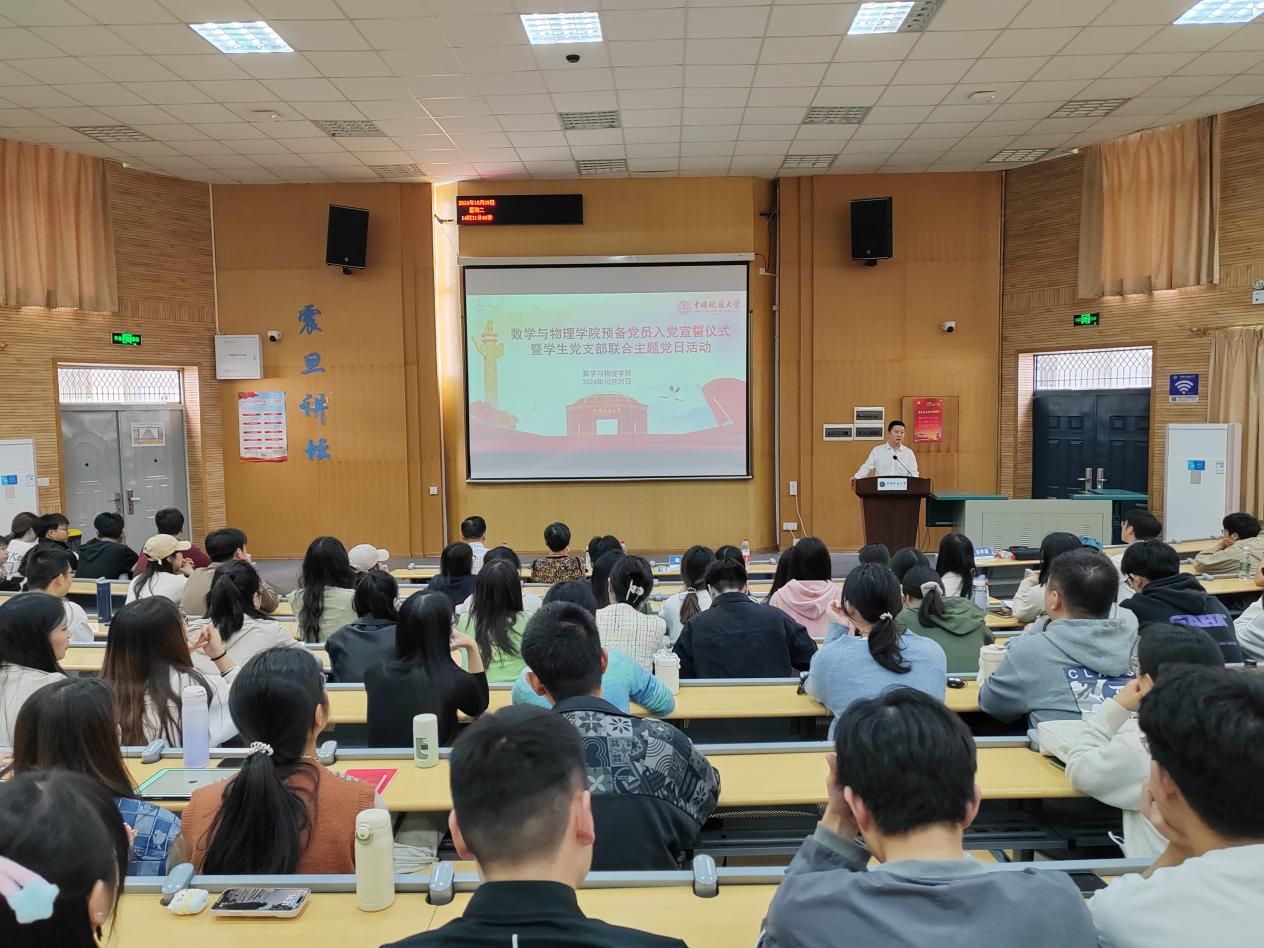 10月29日,永利集团yl6809官网中共预备党员入党宣誓仪式暨学生党支部联合“支部主题党日”活动在教三楼109教室举行,学校党委原副书记朱勤文、学校党委组织部副处级专职组织员徐家忠应邀出席。永利集团yl6809官网全体学生党员、入党积极分子近400人参会。永利集团yl6809官网党委副书记徐超主持会议。