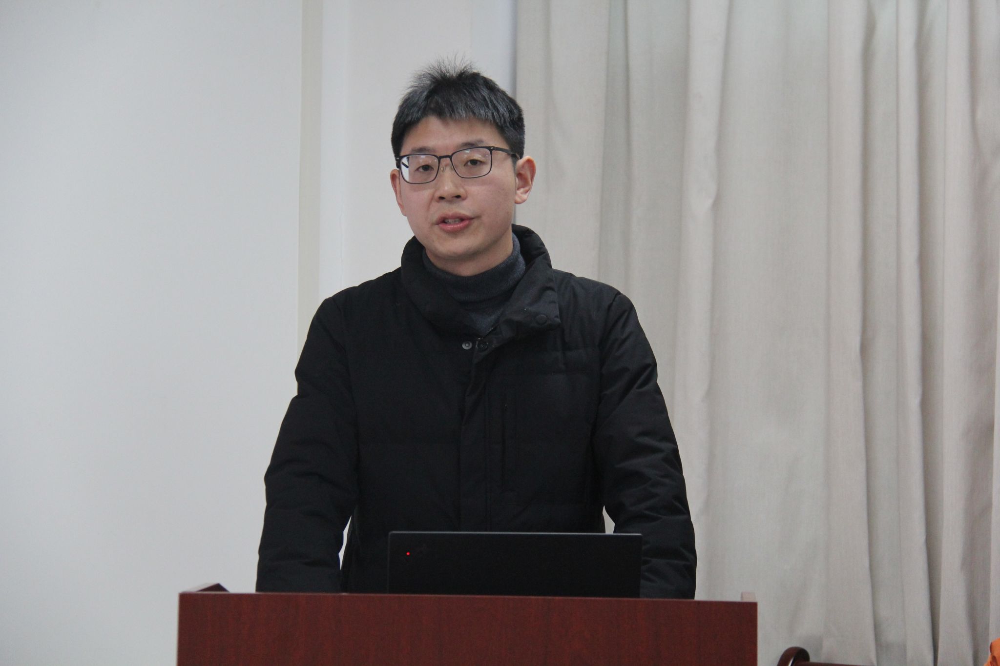 易明首先介绍学校博士点培养方案制定的背景和相关编制工作安排,魏周超随后从指导原则、学科简介、学科研究方向与特色、培养目标、修业年限与课程设置、必读经典著作、专业学术期刊和网站、科研能力及素质、学位论文及学术成果要求等方面详细汇报学院数学一级博士点培养方案的制订情况。