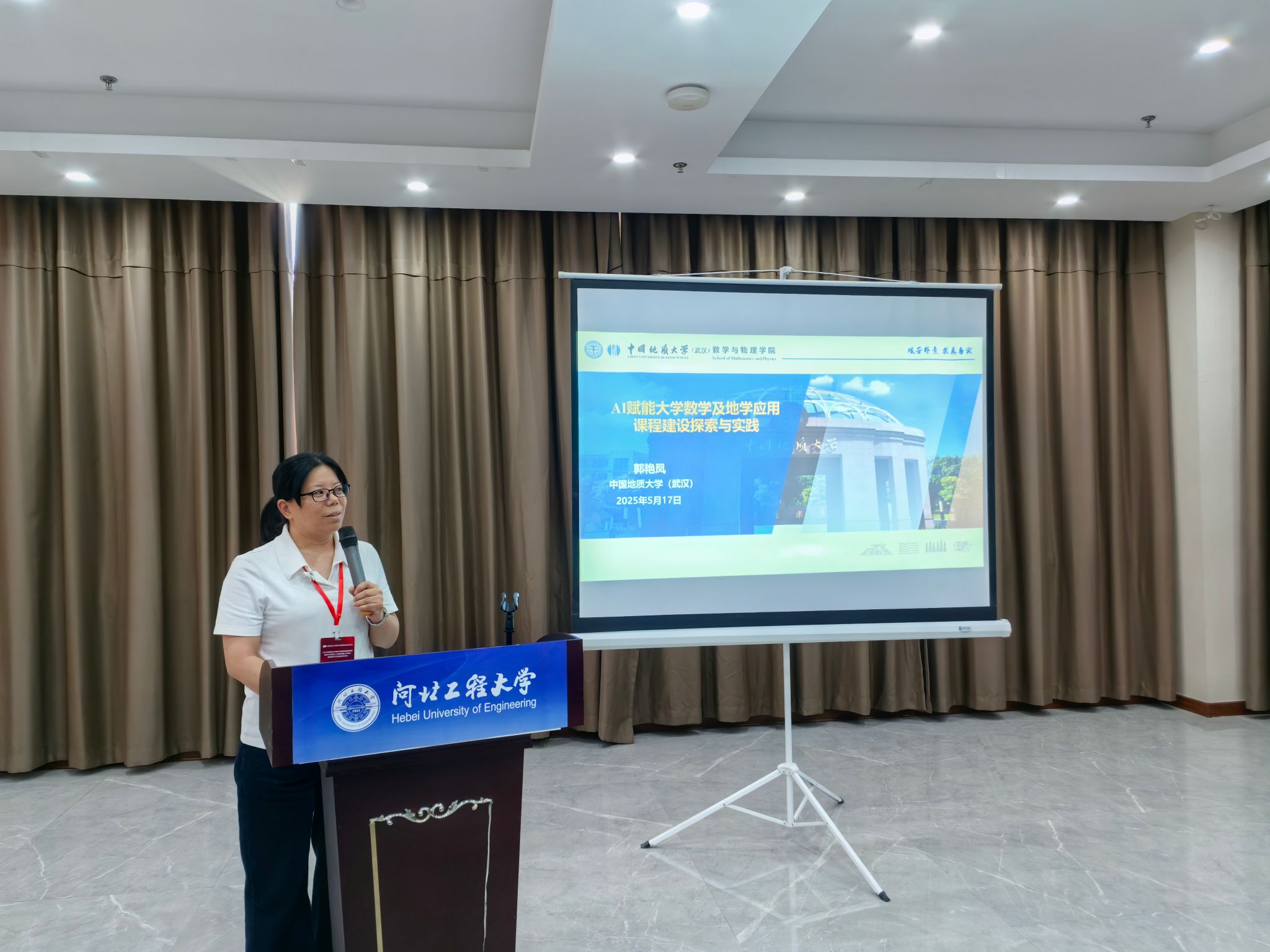 永利集团yl6809官网副院长郭艳凤教授应邀出席授牌仪式,并在大会作了《AI赋能大学数学及地学应用课程建设探索与实践》的主题报告,分享了我校在AI赋能大学数学教育教学中的主要做法和举措,并与参加会议的各高校教师进行了热烈的交流和探讨。