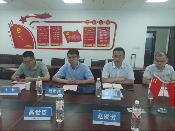 魏周超对高世臣一行表示热烈欢迎,并详细介绍了学院在博士学位点申报、一流专业建设以及课程建设等方面的工作经验与成果。他表示,中国地质大学(北京)与中国地质大学(武汉)虽地域相隔,但两校同根同源,有着深厚的历史渊源,希望以此次交流为契机,两院能在学科建设、专业建设、师资交流等方面加强合作交流,互相学习借鉴,共同推动两院各项事业高质量发展。