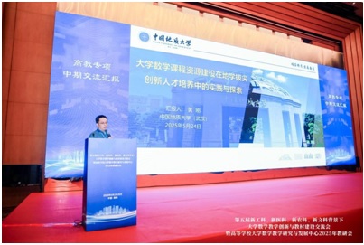 会议期间,高等学校大学数学教学研究与发展中心主任李继成教授解读了2024年度工作总结及2025年立项指南,鼓励高校围绕“AI + 数学教育”“新工科数学课程群建设”等方向开展联合攻关。在分组讨论环节,永利集团官网黄刚教授做了“大学数学课程资源建设在地学拔尖创新人才培养中的实践与探索”的项目汇报,介绍了我校大学数学与地学交叉教学团队围绕地球科学与大学数学课程的融合,构建知识点对应的应用体系,形成具有代表性的课堂教学案例,组织编写具有新工科特色的系列教材、推动课程资源数字化建设,积极开展教学实践与探索,提升学生交叉学科素养与应用能力。报告受到了与会同行的高度赞扬。