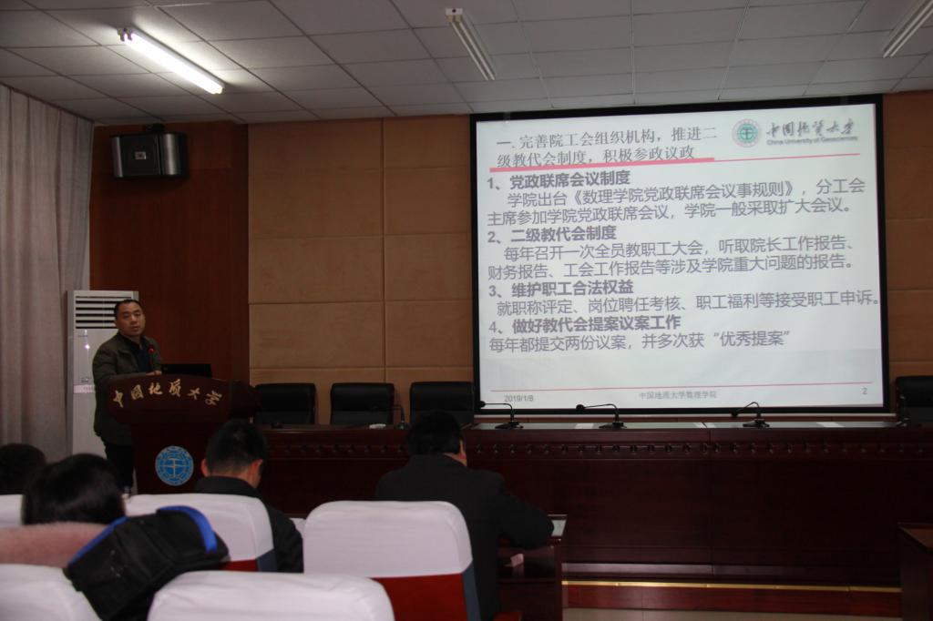 学院分工会主席王希成代表工会委员会做了工会年度工作报告及经费使用说明。他在报告中回顾了2018年工会工作以及学院工会在学校各项比赛中取得的成绩,号召全院职工努力为学院争取更多的荣誉。